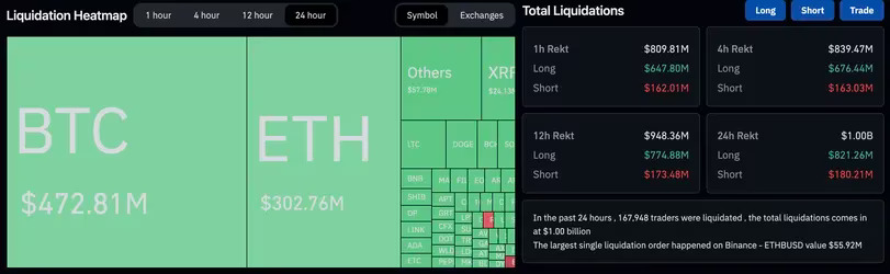 Ether, the second-largest global cryptocurrency, experienced a comparable setback, declining to $1,680—a drop of 6.6% within the preceding 24 hours.