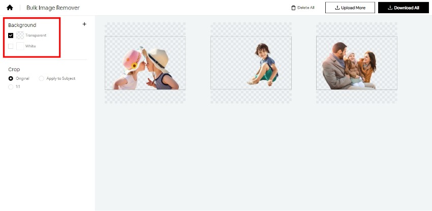 Step 2: You can now choose if you want the background transparent or white. The options are given on the left panel. The AI will work on its own.