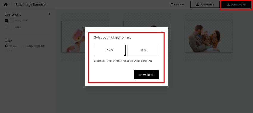 Moreover, in one click, a user can remove background from bulk images. Yes, it features the bulk background remover option, which trusts me, has been the most helpful for me. You just need to upload the image, and within a while, the outcome will be there.