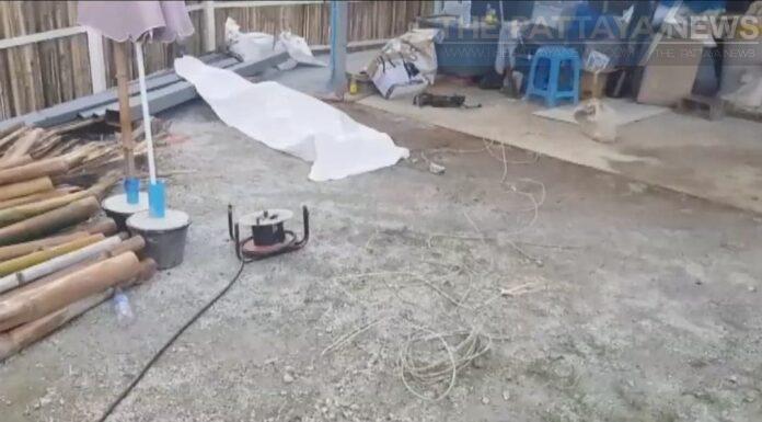 When police and rescue workers arrived, they discovered the burnt body of 46-year-old crane driver Sompong Thaemsomdee beside the boom crane.