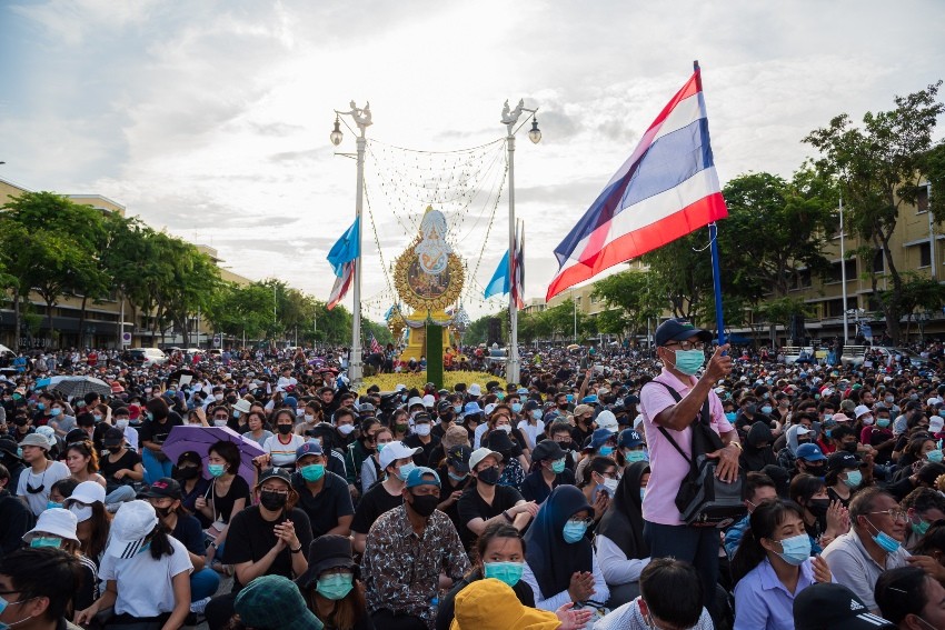 Most attending the rally were students dressed in black sporting masks and protest signs. The rally was aimed at democracy in Thailand as well as dissolving the parliament. Other groups also participated ranging from LGBT rights groups to sex-worker rights groups.
