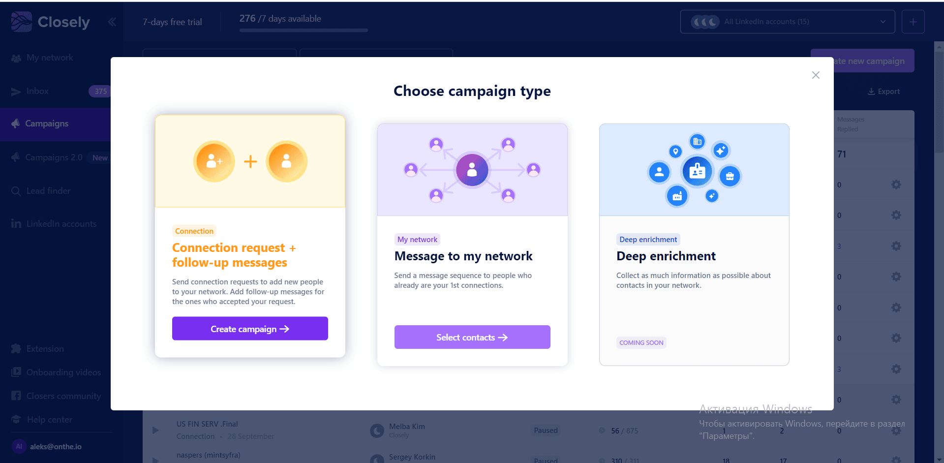 Above is a simple connection campaign in Closely, an all-in-one automation tool for LinkedIn. It works in the cloud and is a perfectly safe, reliable and most advanced solution on the market.